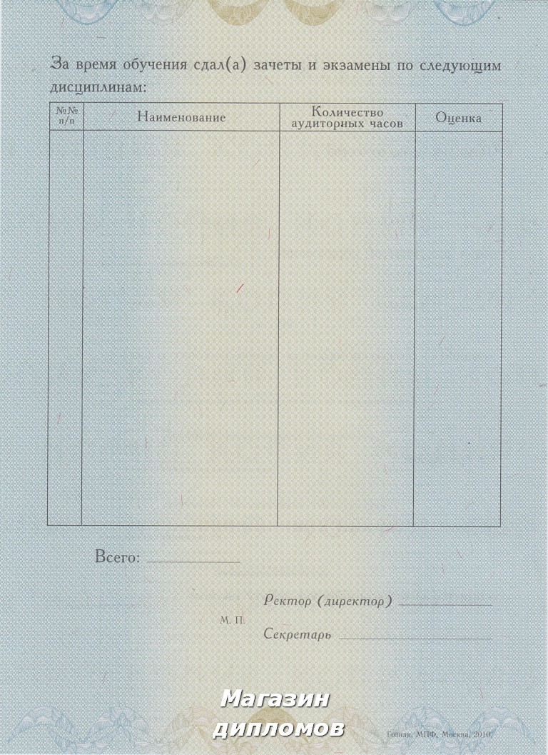 Диплом о профессиональной переподготовке (Гознак, МПФ, Москва 2010 год.), выдавался до 2010 года.